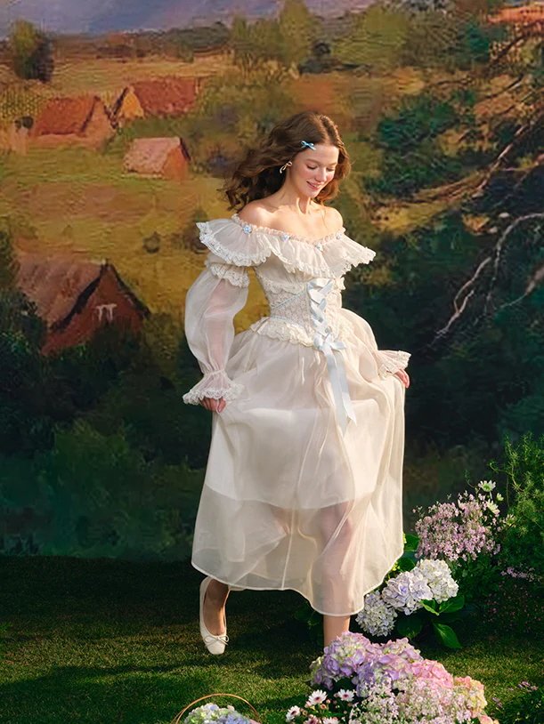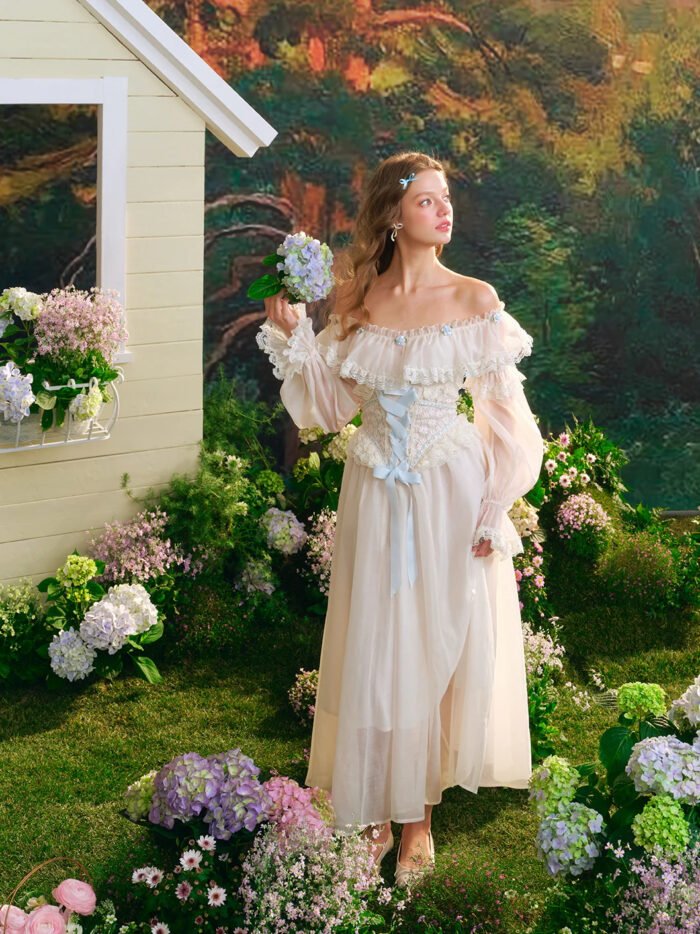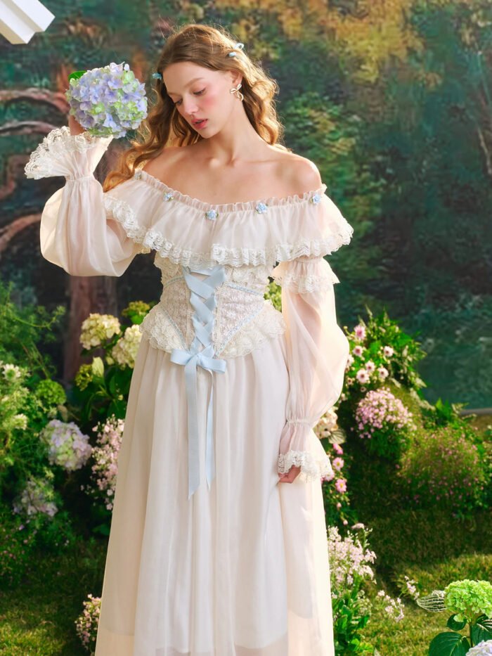 France Style – Blue Blossom Corset Fairy Maxi Dress