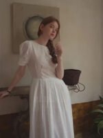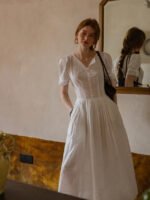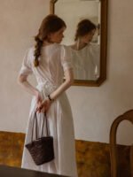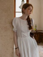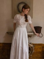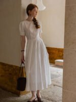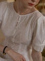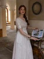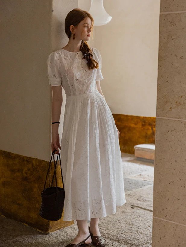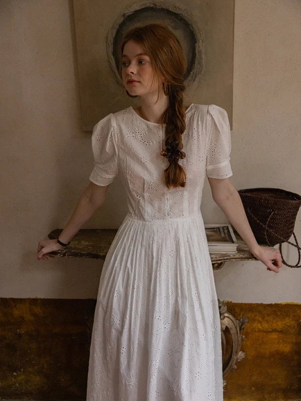 France Style – Cottagecore White Eyelet Lace Summer Dress