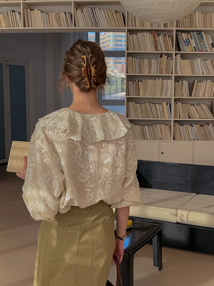 France Style – Romantic Sheer Floral Embroidered Blouse