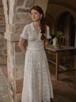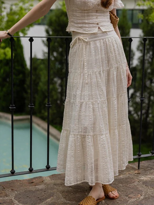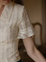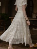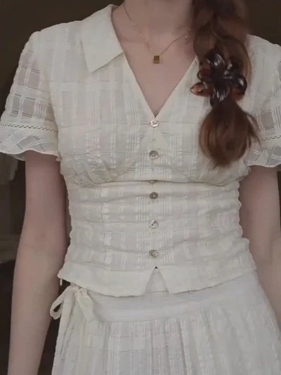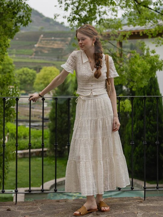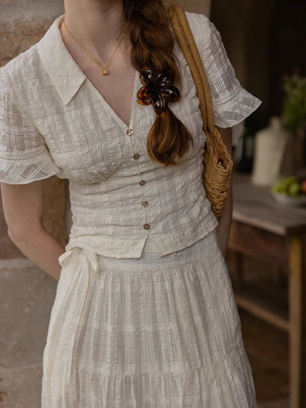 France Style – Vintage Textured Cotton Blouse & Skirt